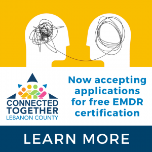 (Lebanon, PA) – The Community Health Council of Lebanon County is now accepting scholarship applications for training and certification in Eye Movement Desensitization and Reprocessing (EMDR) Therapy. The application is open to licensed mental health service providers based in Lebanon county. This opportunity is the second part of the Council’s Connected Together Initiative designed to address and mitigate risk factors which contribute to violence in our communities.