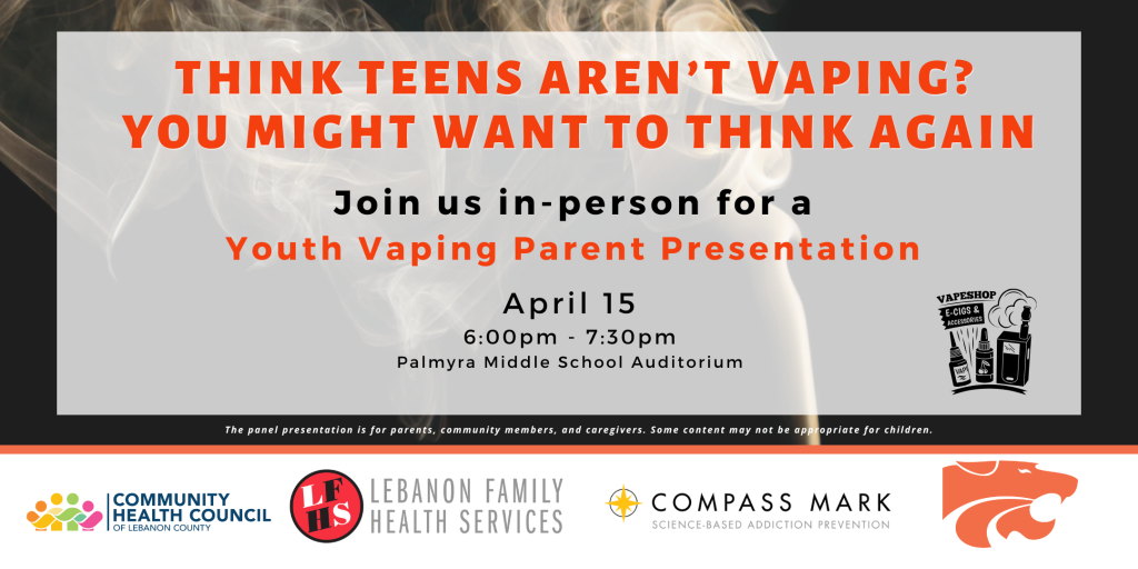 Come join us at Palmyra Area High School for an eye-opening event about the dangers of youth vaping. Our experts will share important information on the risks associated with vaping, how to recognize signs of vaping among teenagers, and resources available for support. This is a must-attend event for parents, teachers, caregivers, and anyone concerned about the health of our youth.